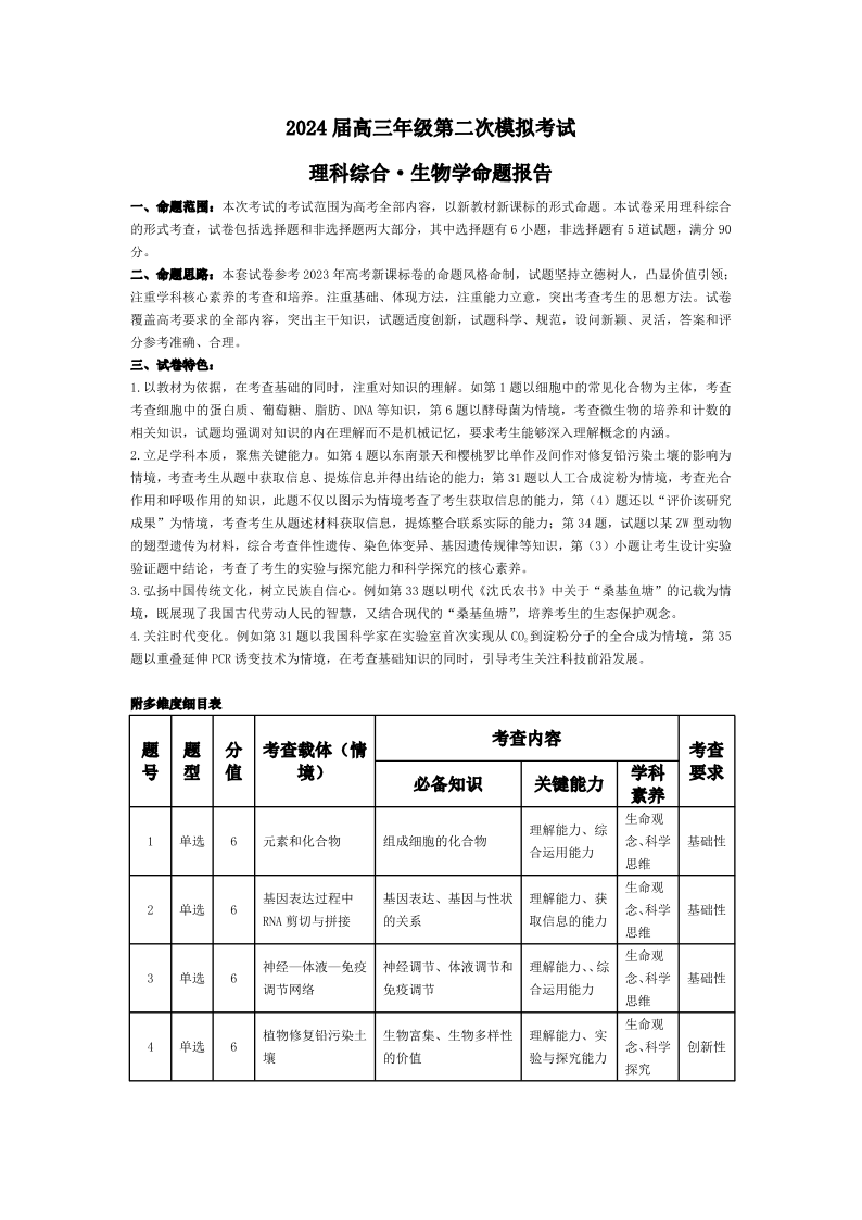 河南省四市2024届高三3月联考(焦作濮阳安阳鹤壁二模)生物命题报告