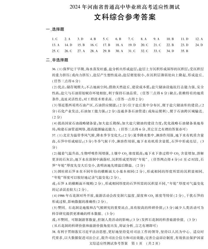 2024届河南省普通高中毕业班高考适应性测试文科综合答案