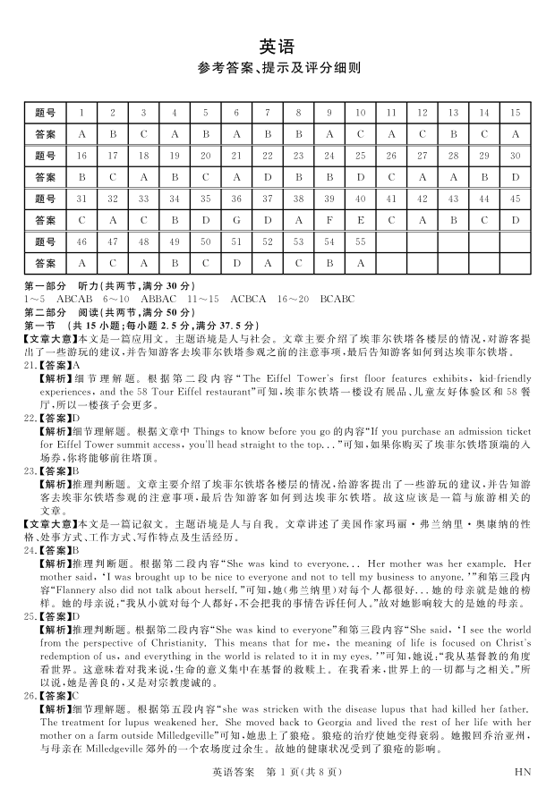 河南省八市重点高中2024届高三4月第一次模拟英语答案