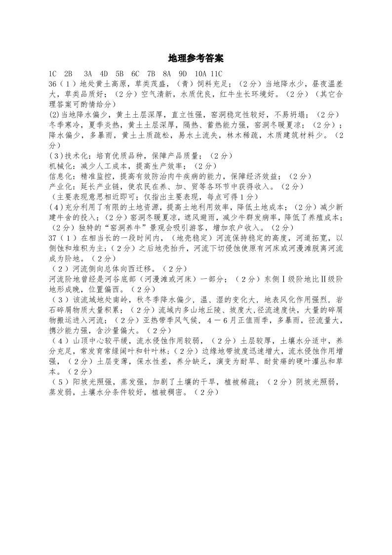 河南省开封市2024届高三年级第三次质量检测(三模)地理答案