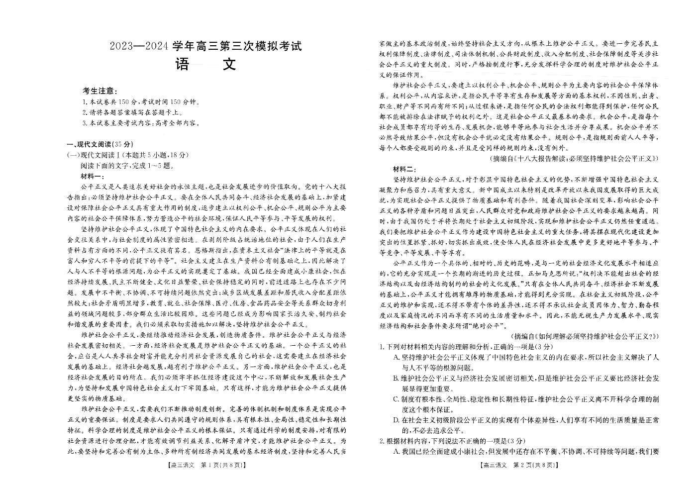 河南省新乡市2024届高三下学期三模考试(三模)语文