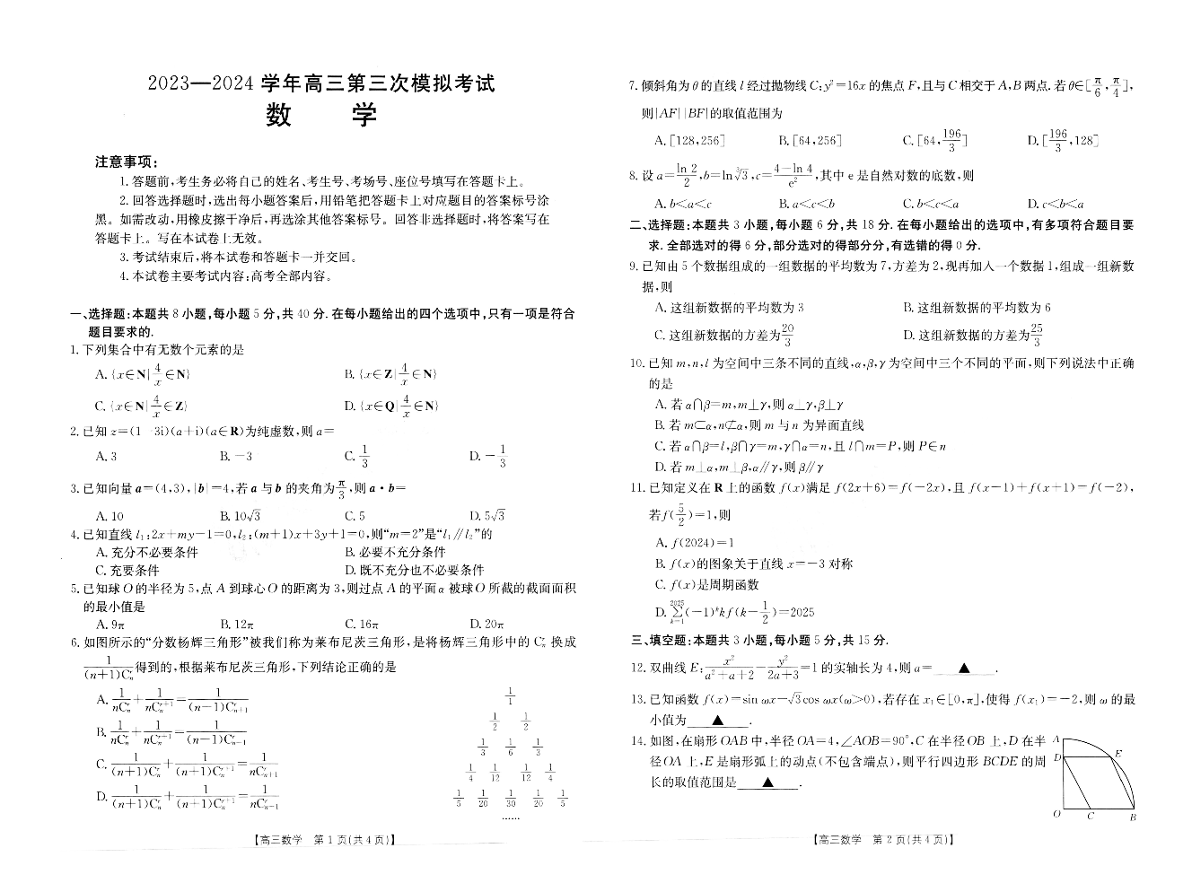 河南省新乡市2024届高三下学期三模考试(三模)数学