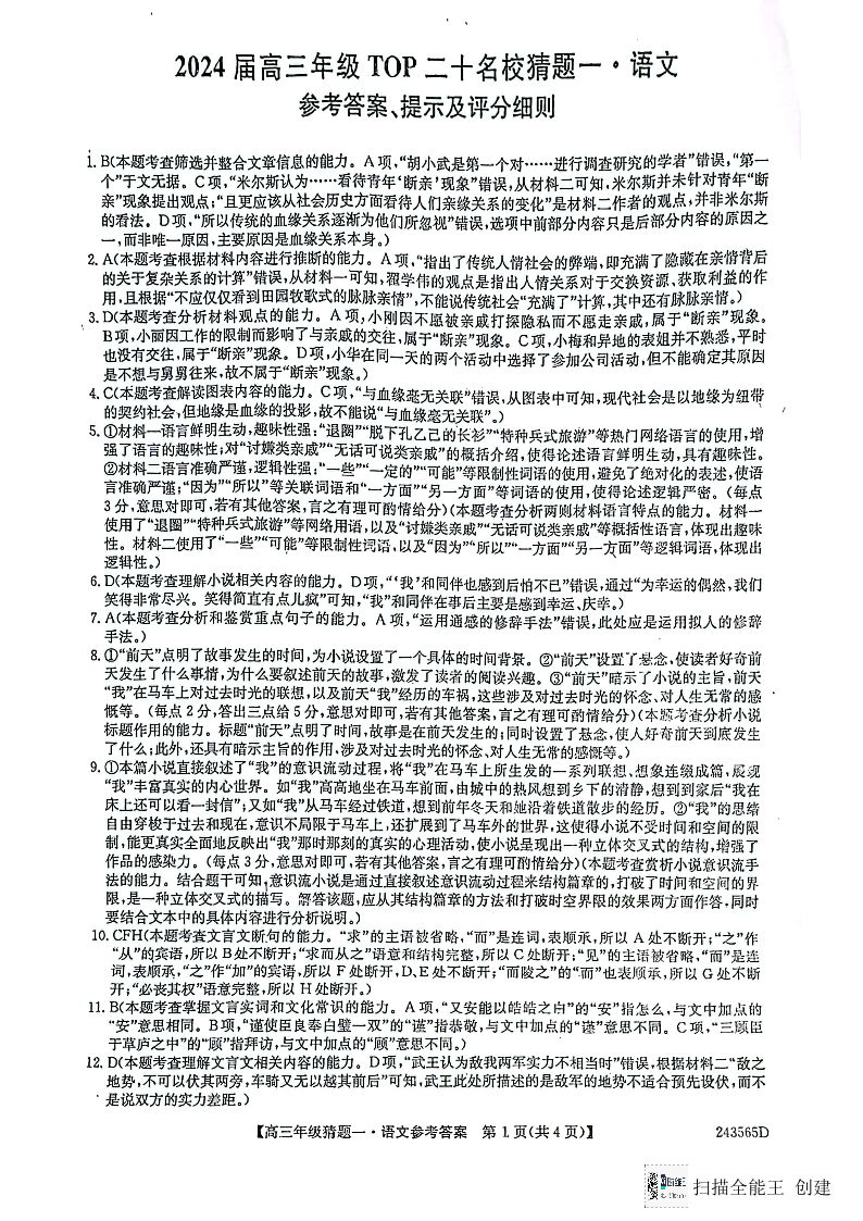 河南省TOP二十名校2024届高三年级5月联考猜题(一)语文答案
