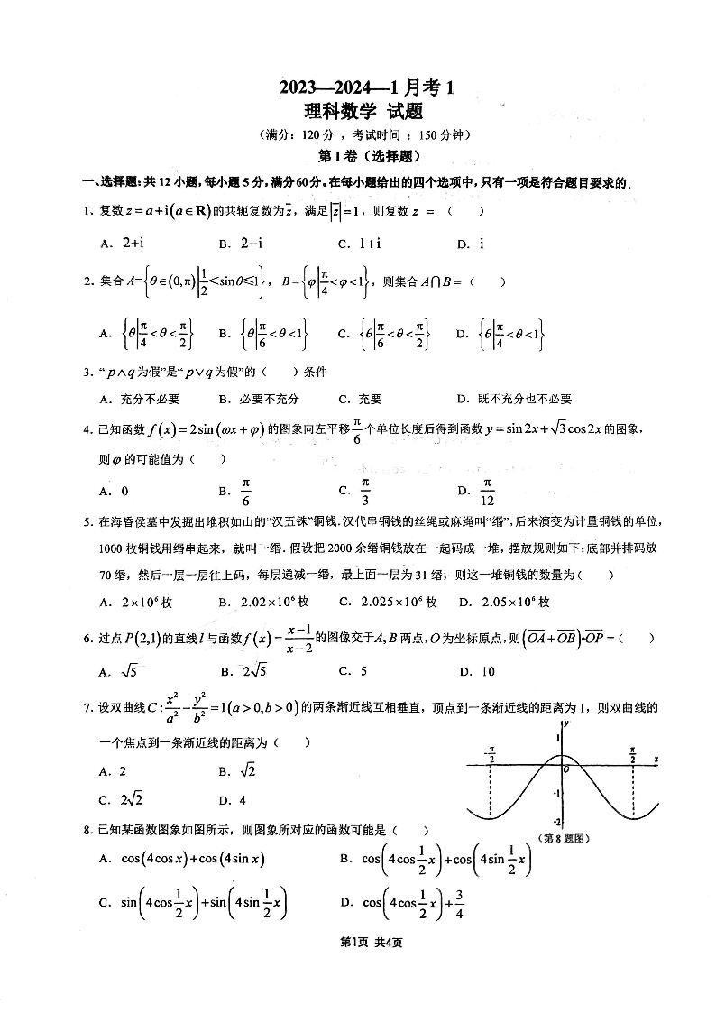 陕西省西安市铁一中学2024届高三上学期9月月考理数