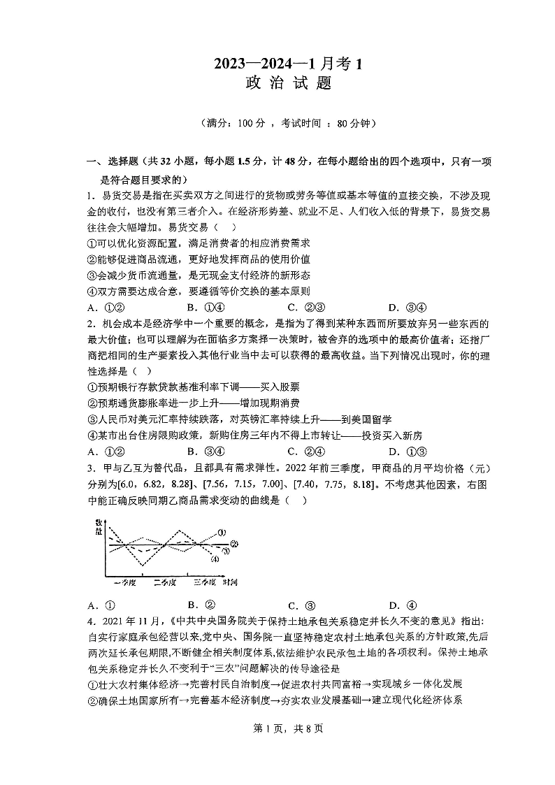 陕西省西安市铁一中学2024届高三上学期9月月考政治