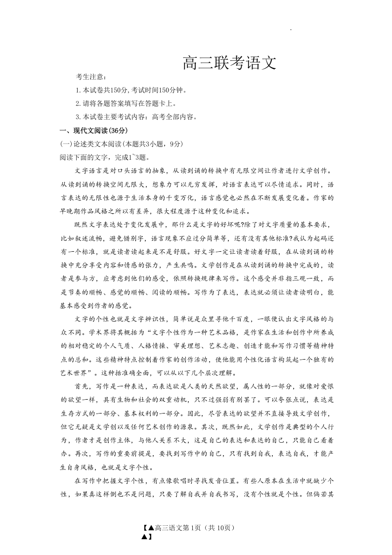 陕西省部分学校2024届高三上学期第一次联考语文