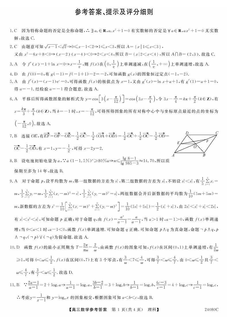 陕西省宝鸡教育联盟2024届高三上学期阶段性检测(二)理数答案