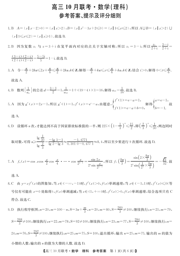 陕西省安康市重点名校2024届高三上学期10月联考数学(理科)答案