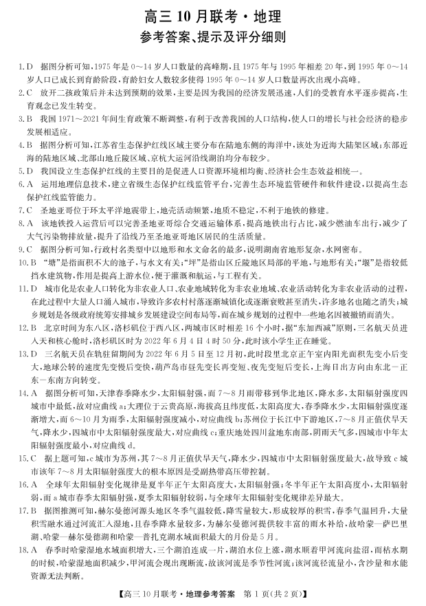 陕西省安康市重点名校2024届高三上学期10月联考地理答案