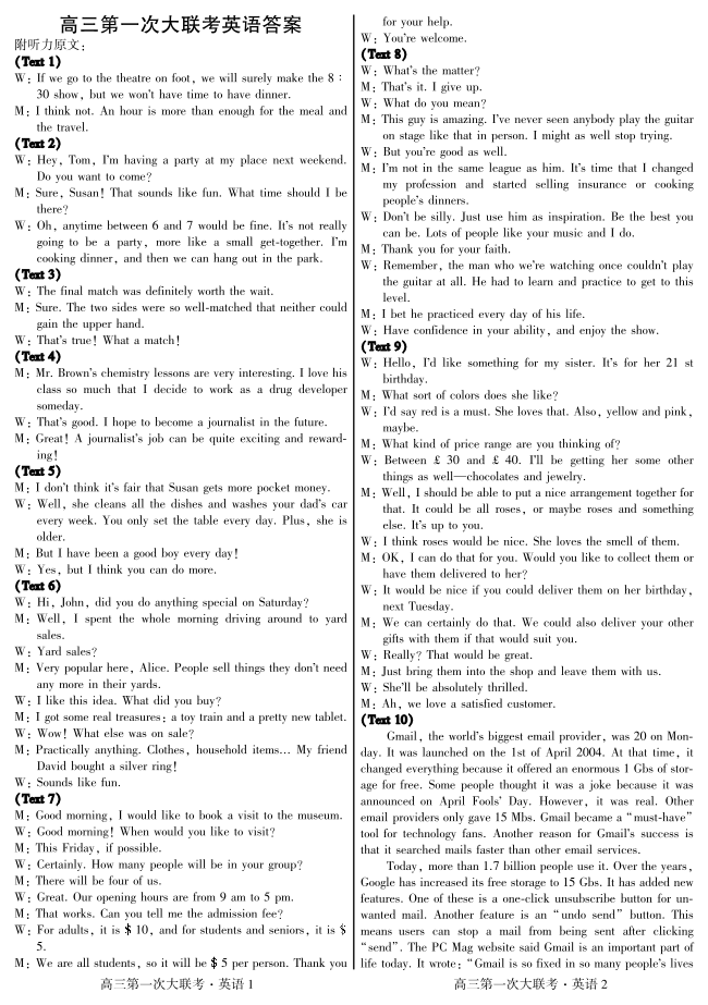 河北省邯郸市部分学校2025届高三上学期第一次大联考模拟预测英语答案