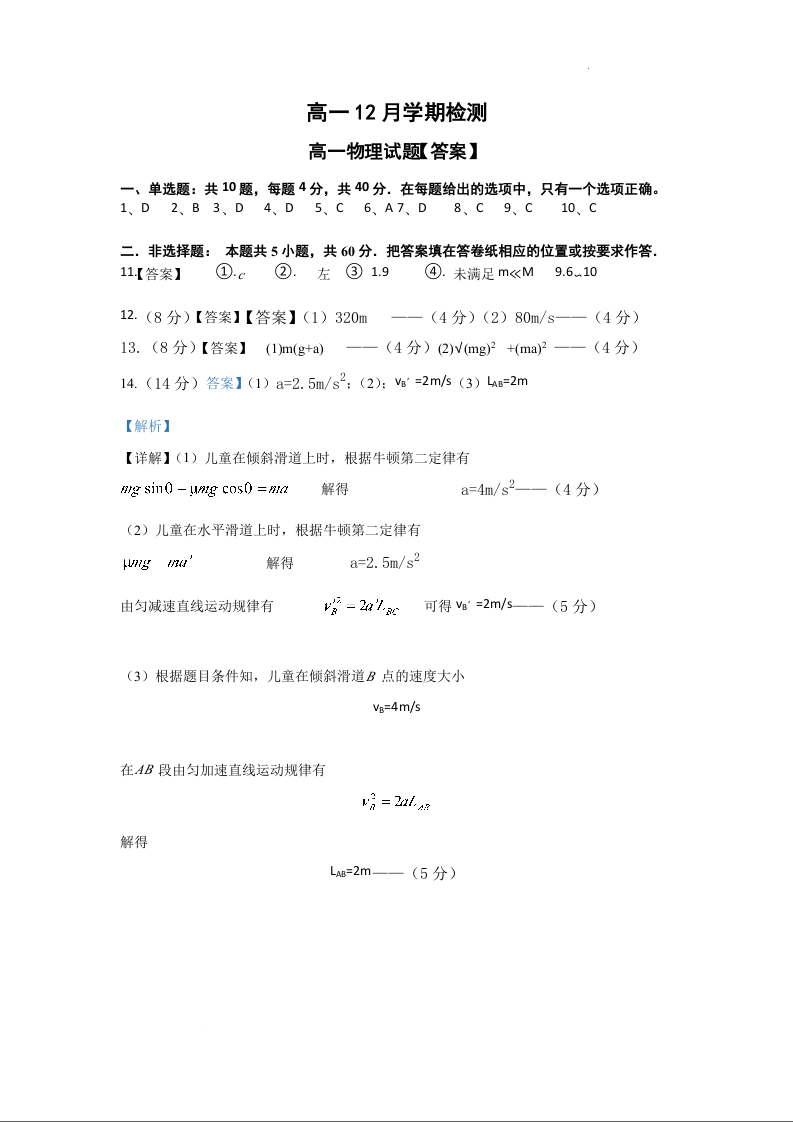 江苏省扬州市八校2024-2025学年上学期12月高一学情检测物理答案