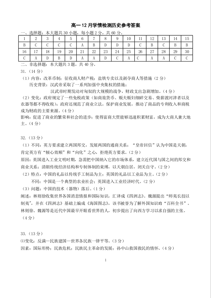 江苏省扬州市八校2024-2025学年上学期12月高一学情检测历史答案