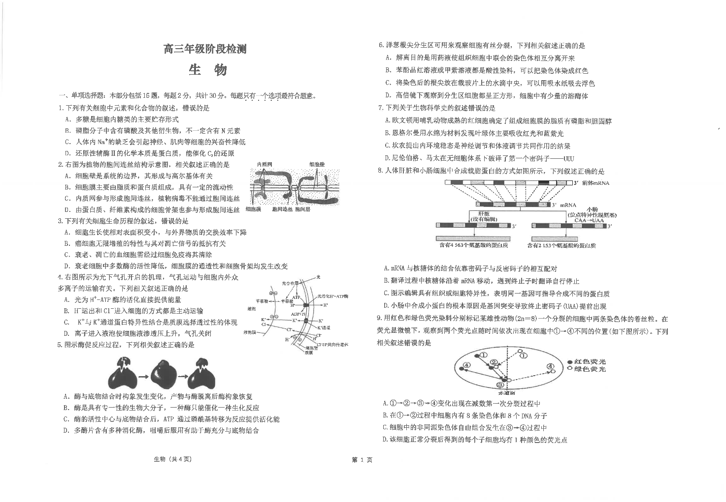 江苏省海安高级中学2025届高三上学期12月月考生物+答案