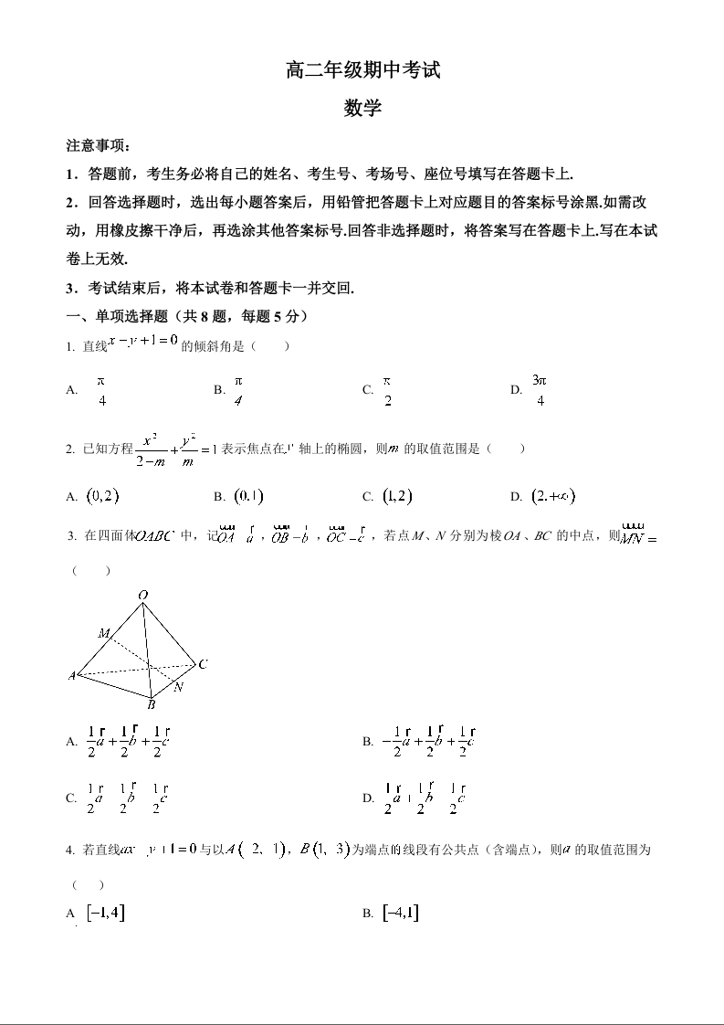 河北省保定市定州市2024-2025学年高二上学期11月期中考试数学(原卷版)
