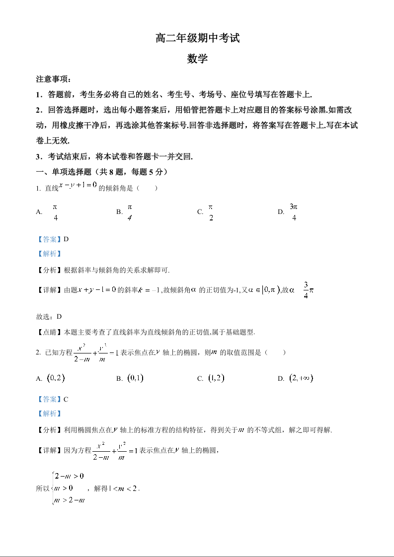 河北省保定市定州市2024-2025学年高二上学期11月期中考试数学(解析版)
