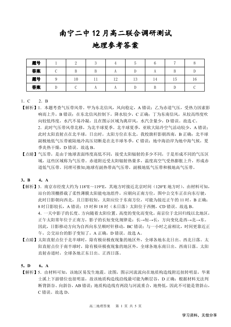 广西省南宁二中等校2024-2025学年高二12月联考地理答案