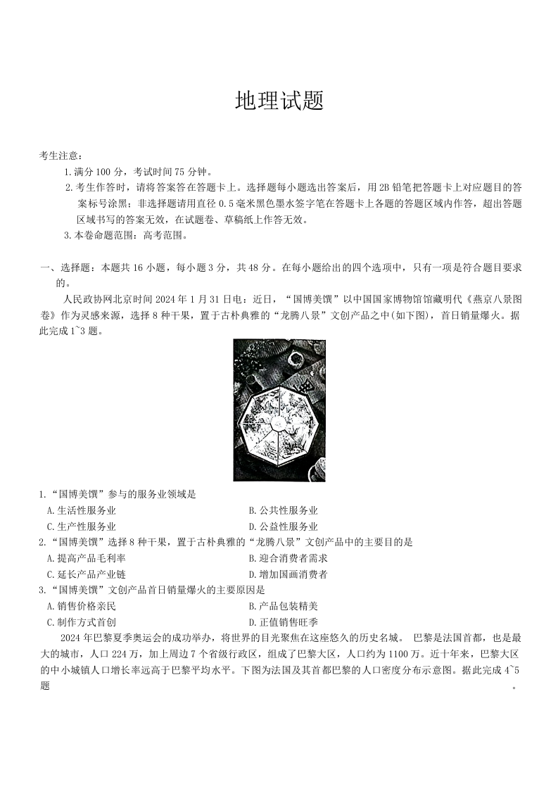 安徽县中联盟2024-2025学年高三9月联考地理试题