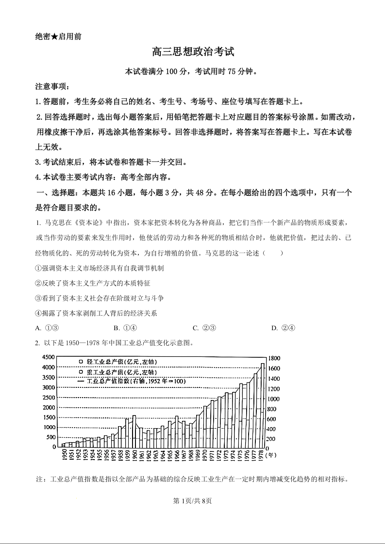 甘肃青海宁夏部分学校2025届高三9月开学大联考政治试题(原卷版)
