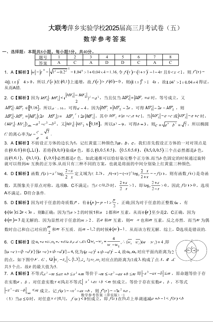 江西省萍乡市萍乡实验2025届高三上学期月考卷(五)数学答案