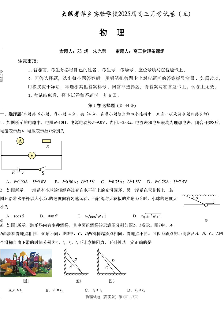 江西省萍乡市萍乡实验2025届高三上学期月考卷(五)物理