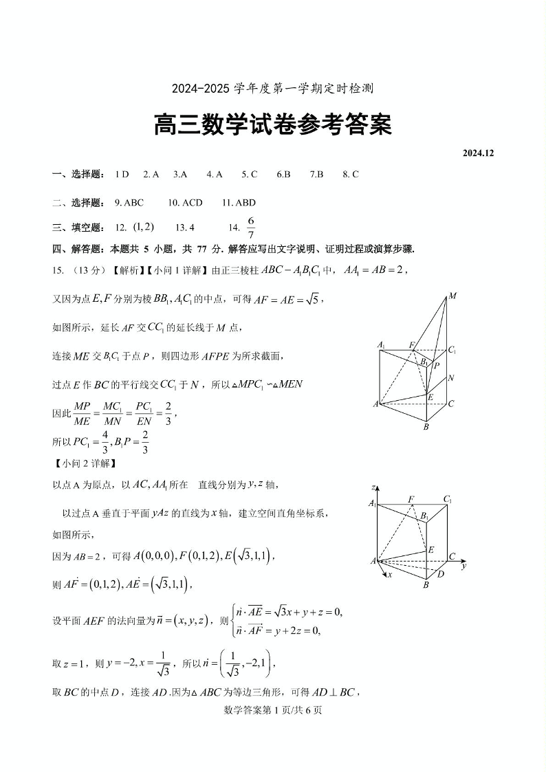山东省滕州市第一中学2025届高三上学期12月定时检测数学答案