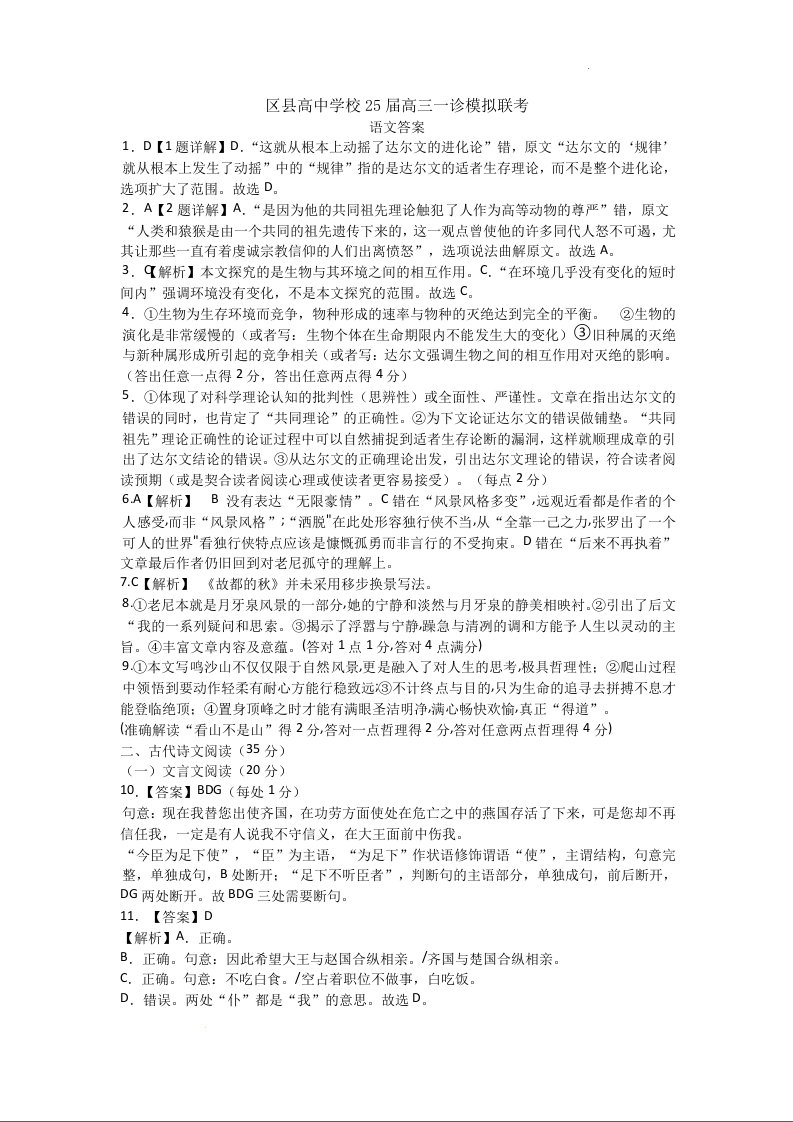 四川省眉山市区县高中2025届高三上学期12月一诊模拟联考语文答案