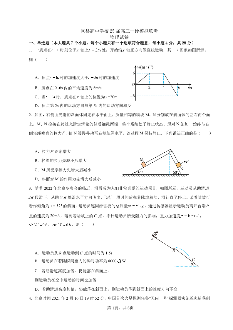 四川省眉山市区县高中2025届高三上学期12月一诊模拟联考物理