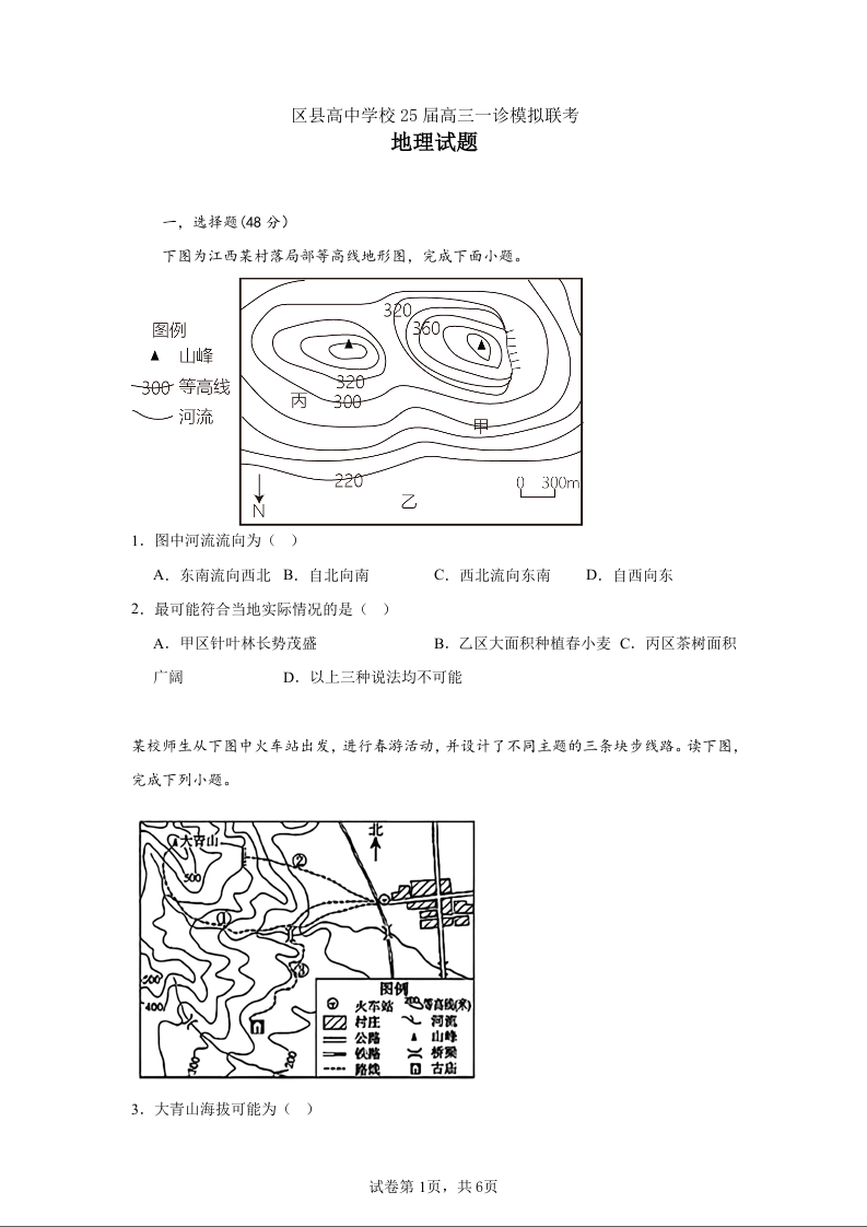 四川省眉山市区县高中2025届高三上学期12月一诊模拟联考地理+答案