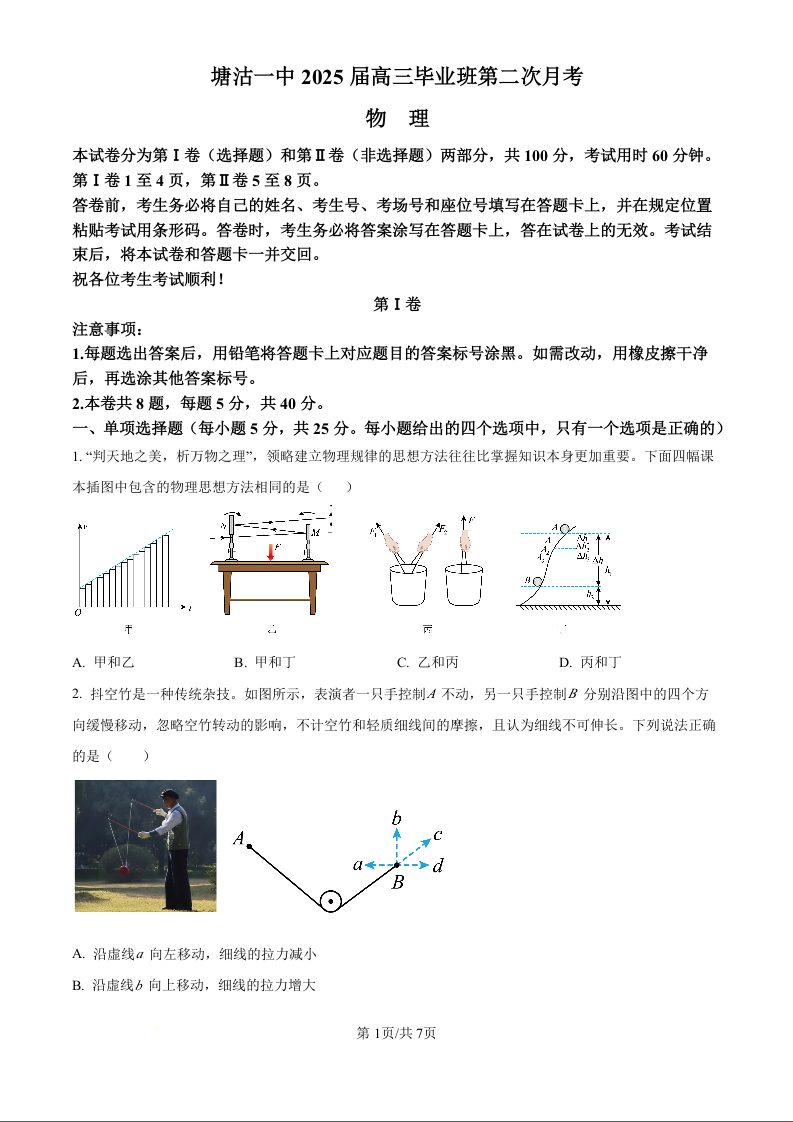 天津市滨海新区塘沽第一中学2025届高三上学期第二次月考物理(原卷版)