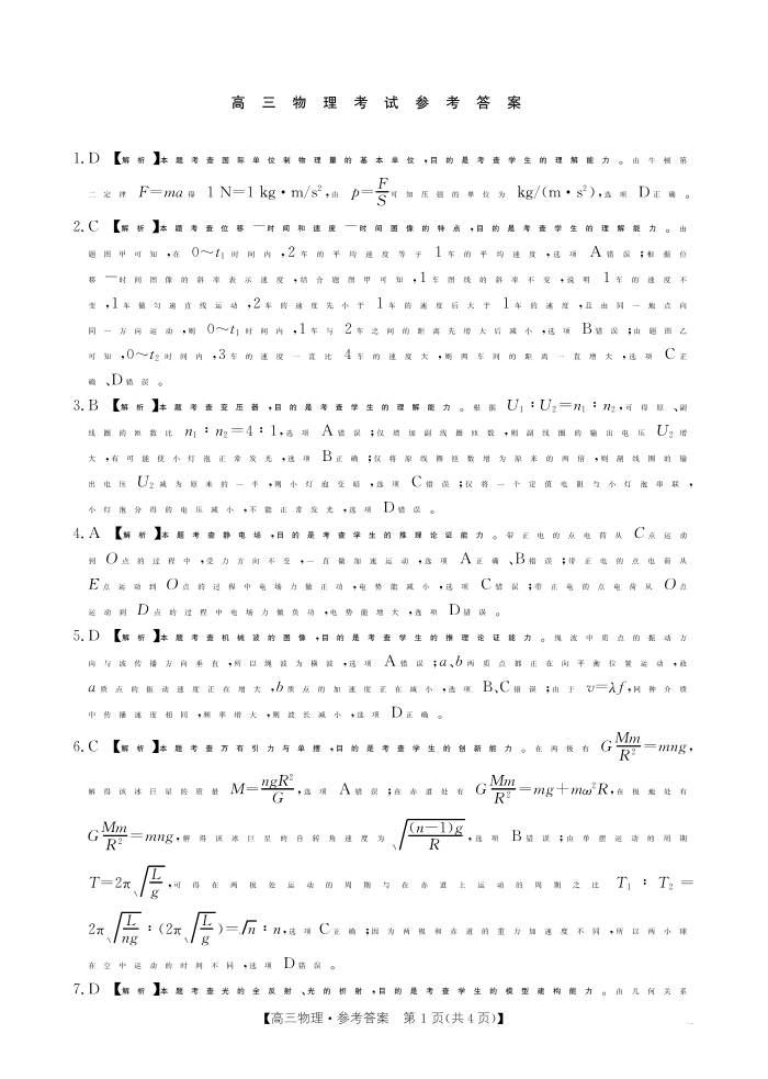广西省部分高中2025届高三9月联考物理答案
