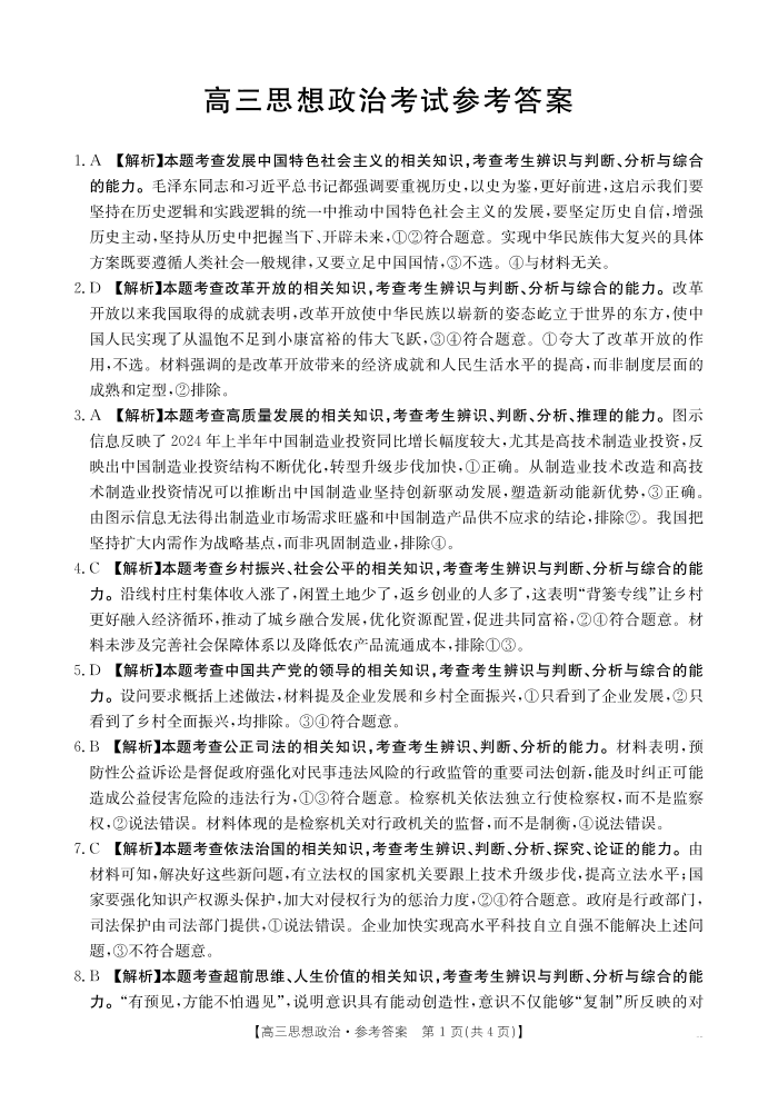 广西省部分高中2025届高三9月联考政治答案