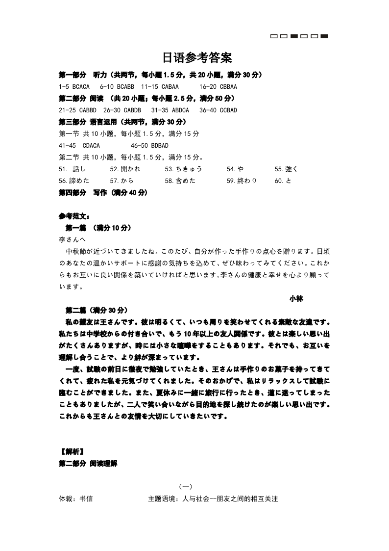 贵州省贵阳市第一中学2025届高三上学期适应性月考(一)日语答案