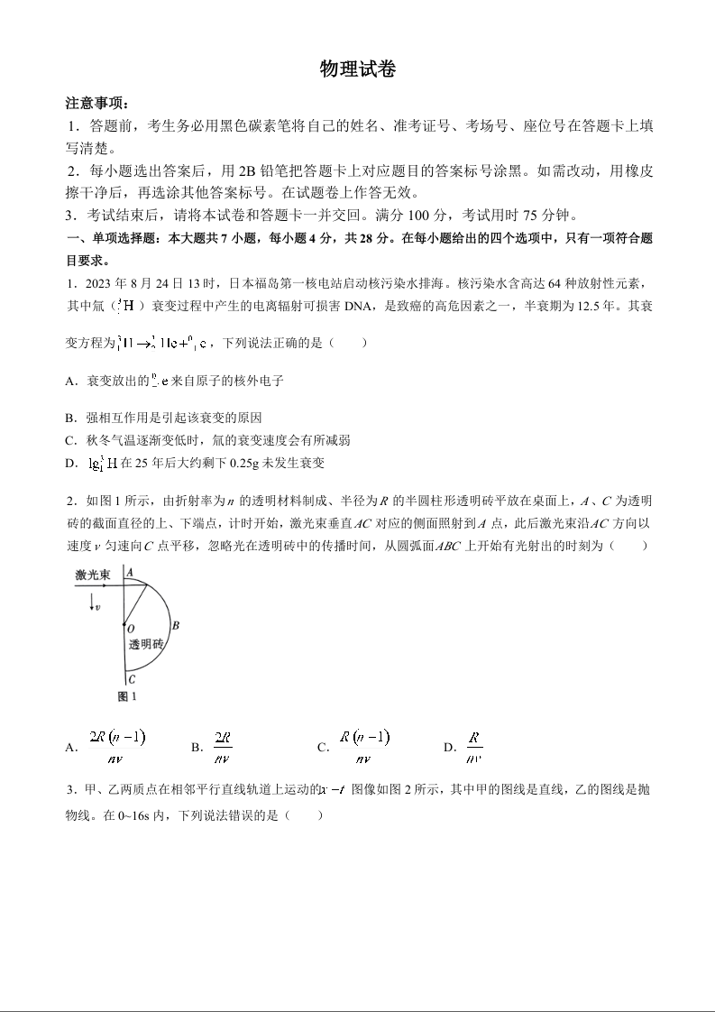 贵州省贵阳市第一中学2025届高三上学期适应性月考(一)物理试卷+答案