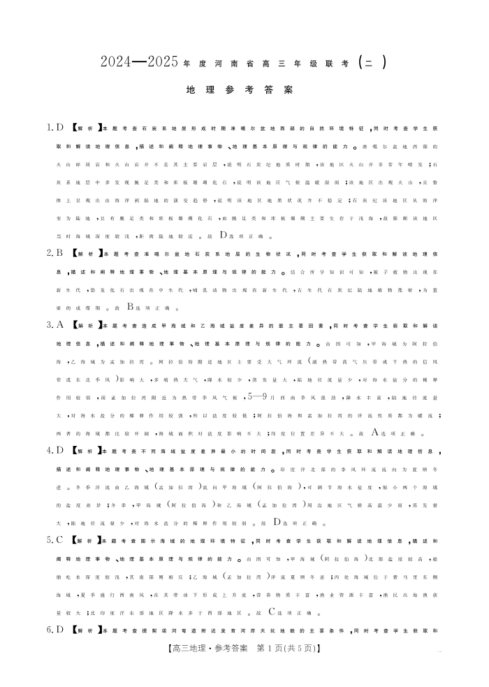 河南省部分学校2024-2025年度高三年级联考(二)地理答案