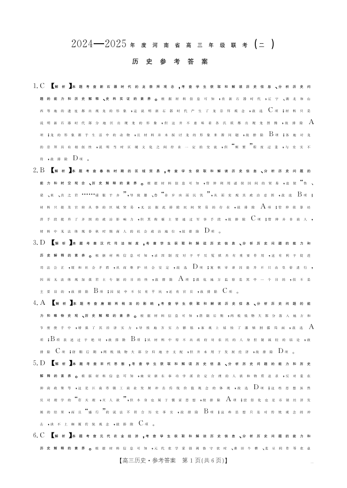 河南省部分学校2024-2025年度高三年级联考(二)历史答案