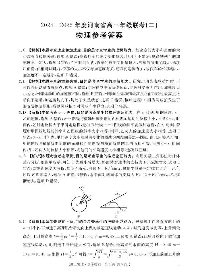 河南省部分学校2024-2025年度高三年级联考(二)物理答案