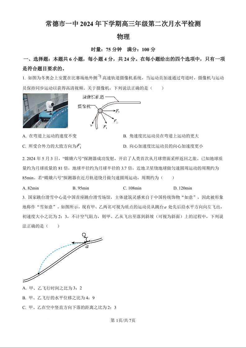 湖南省常德市第一中学2025届高三第二次月水平检测物理试题(原卷版)