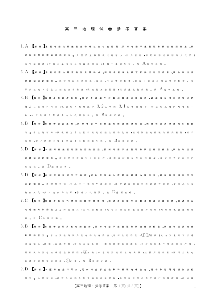 吉林省部分高中2025届高三9月联考地理答案