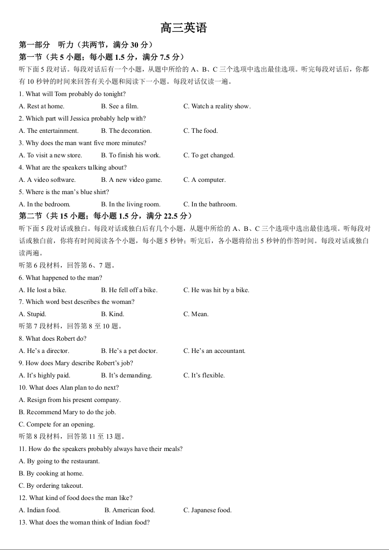 吉林省通化市梅河口市第五中学2025届高三上学期9月月考英语+答案