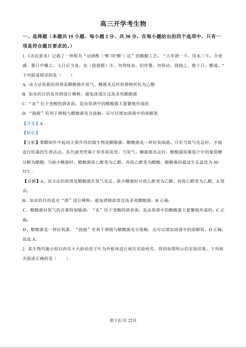 吉林省通化市梅河口市第五中学2025届高三上学期9月月考生物试题(解析版)