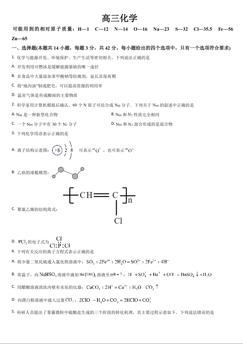 吉林省通化市梅河口市第五中学2025届高三上学期9月月考化学+答案