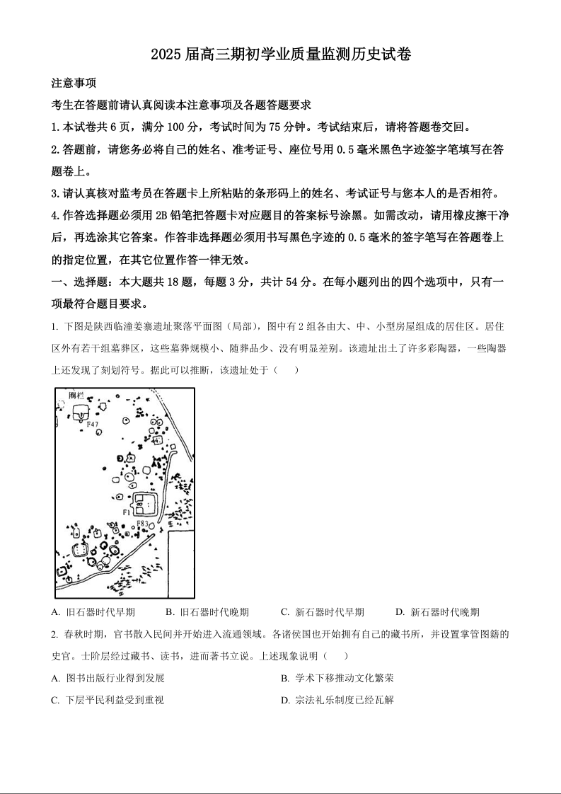 江苏省南通市海安市2025届高三期初学业质量检测试卷历史+答案