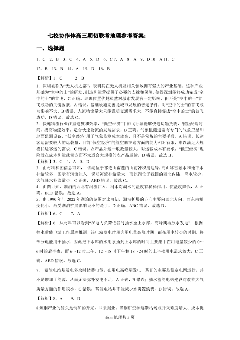 辽宁省2024-2025学年度(上)七校协作体高三期初联考地理答案