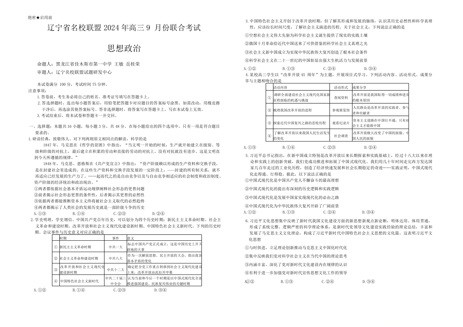 辽宁省名校联盟2024年高三9月份联合考试政治