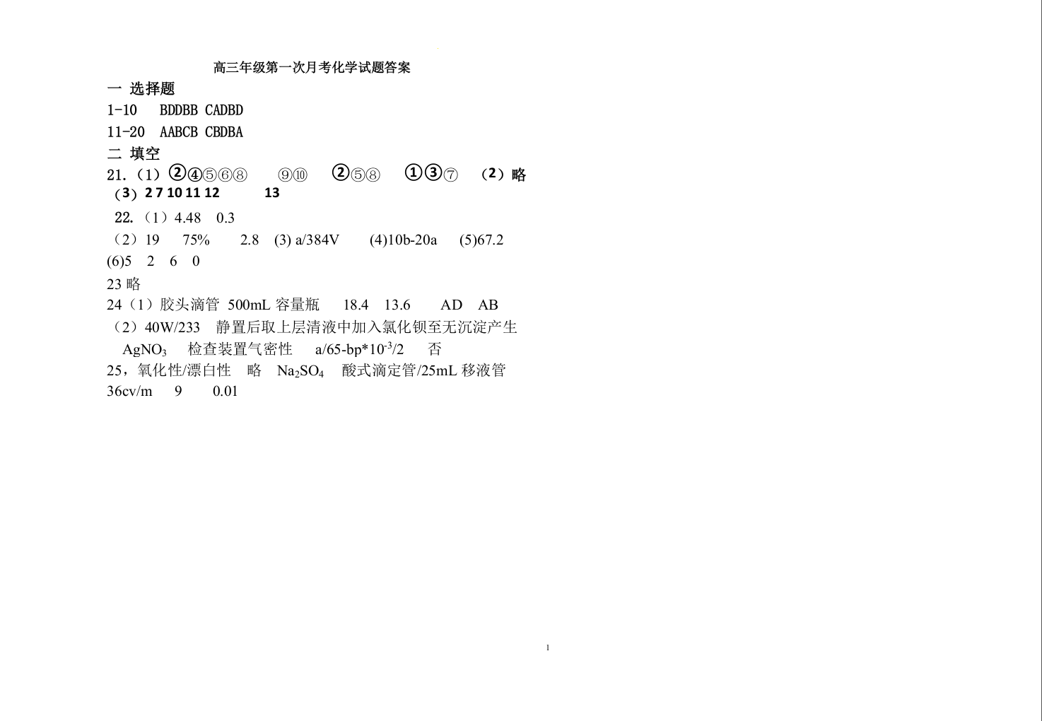 宁夏回族自治区石嘴山市第三中学2024-2025学年第一学期高三第一次月考试卷化学答案