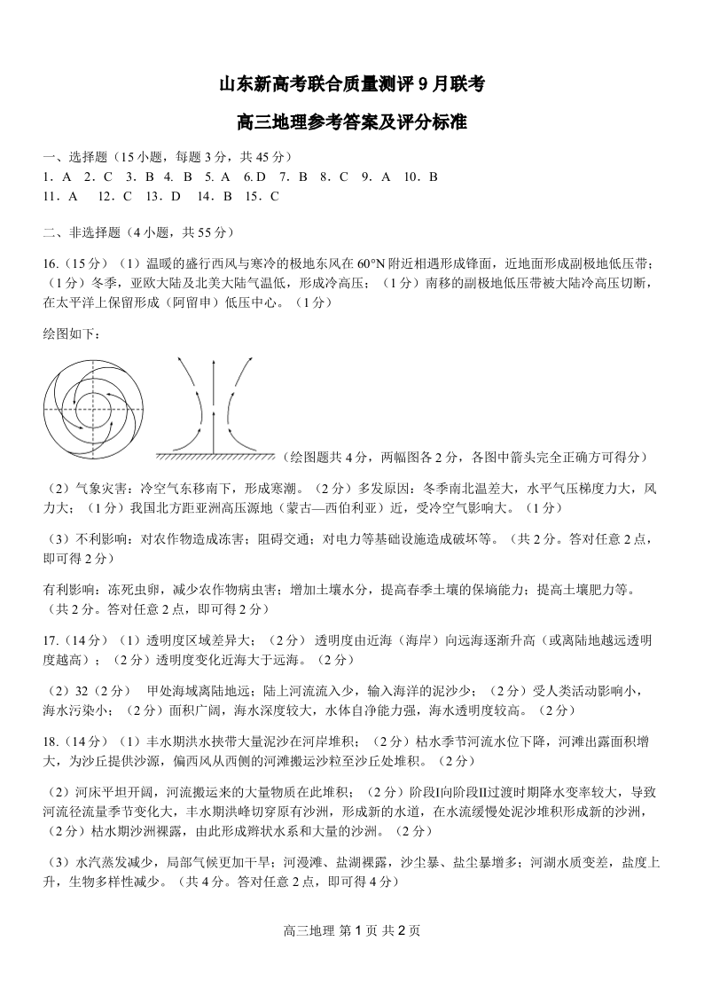 山东省新高考联合质量测评2025届9月联考试题地理答案