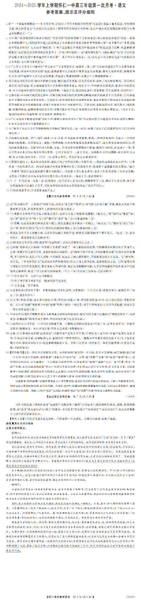 山西省朔州市怀仁市第一中学校2024-2025学前上学期高三年级第一次月考语文答案