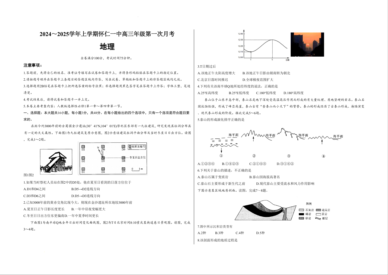 山西省朔州市怀仁市第一中学校2024-2025学前上学期高三年级第一次月考地理