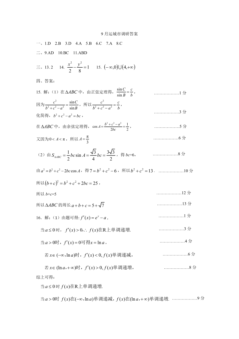 山西省运城市2024-2025学年高三摸底调研测试数学答案