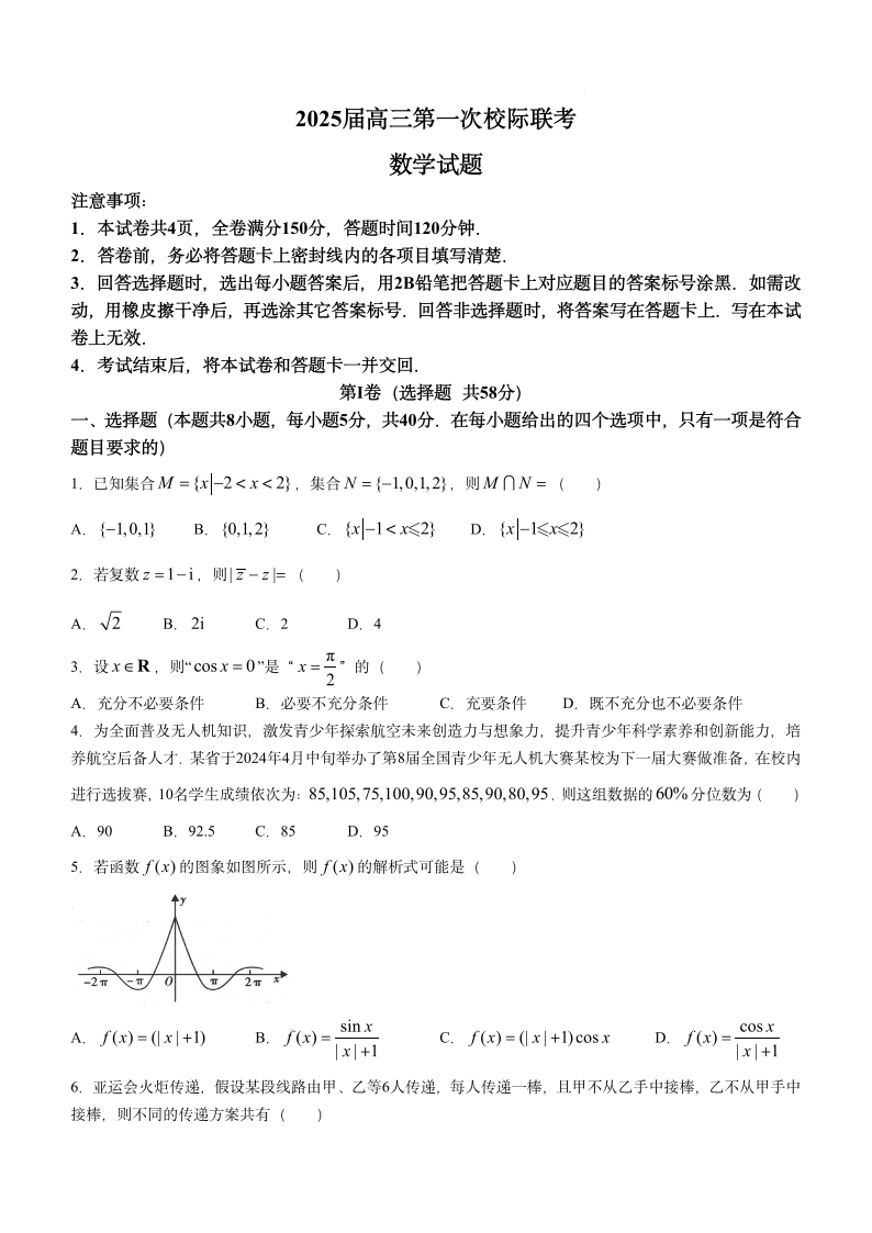 陕西省2025届高三第一次校际开学联考数学